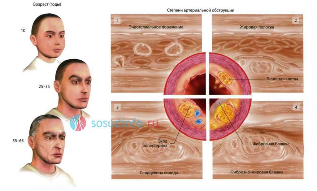 Проявления какой-то патологии в организме, а тем более прямые признаки атеросклероза довольно продолжительное время остаются незамеченными, однако патологический процесс идет, о чем свидетельствуют длительные и постоянные клинические исследования в этой области. Благодаря им в формировании патологических изменений были выделены следующие стадии атеросклероза: