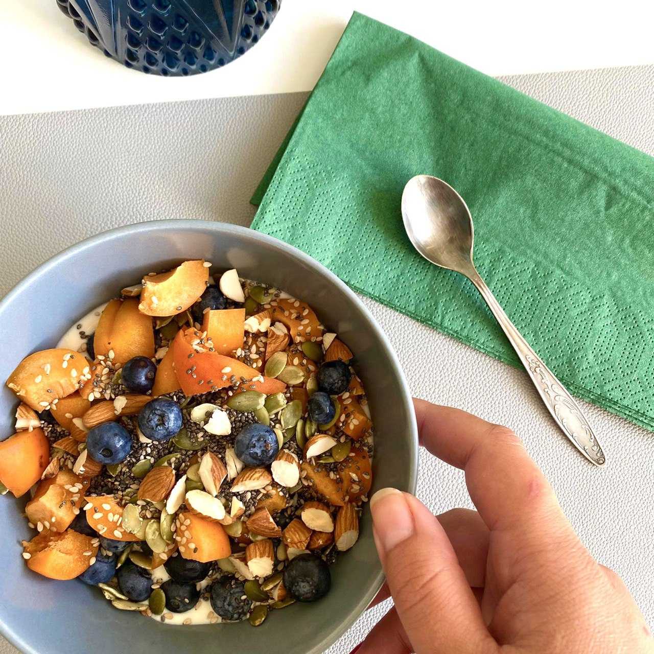 - Нежирный творог с йогуртом и ягодами + ромашковый чай.