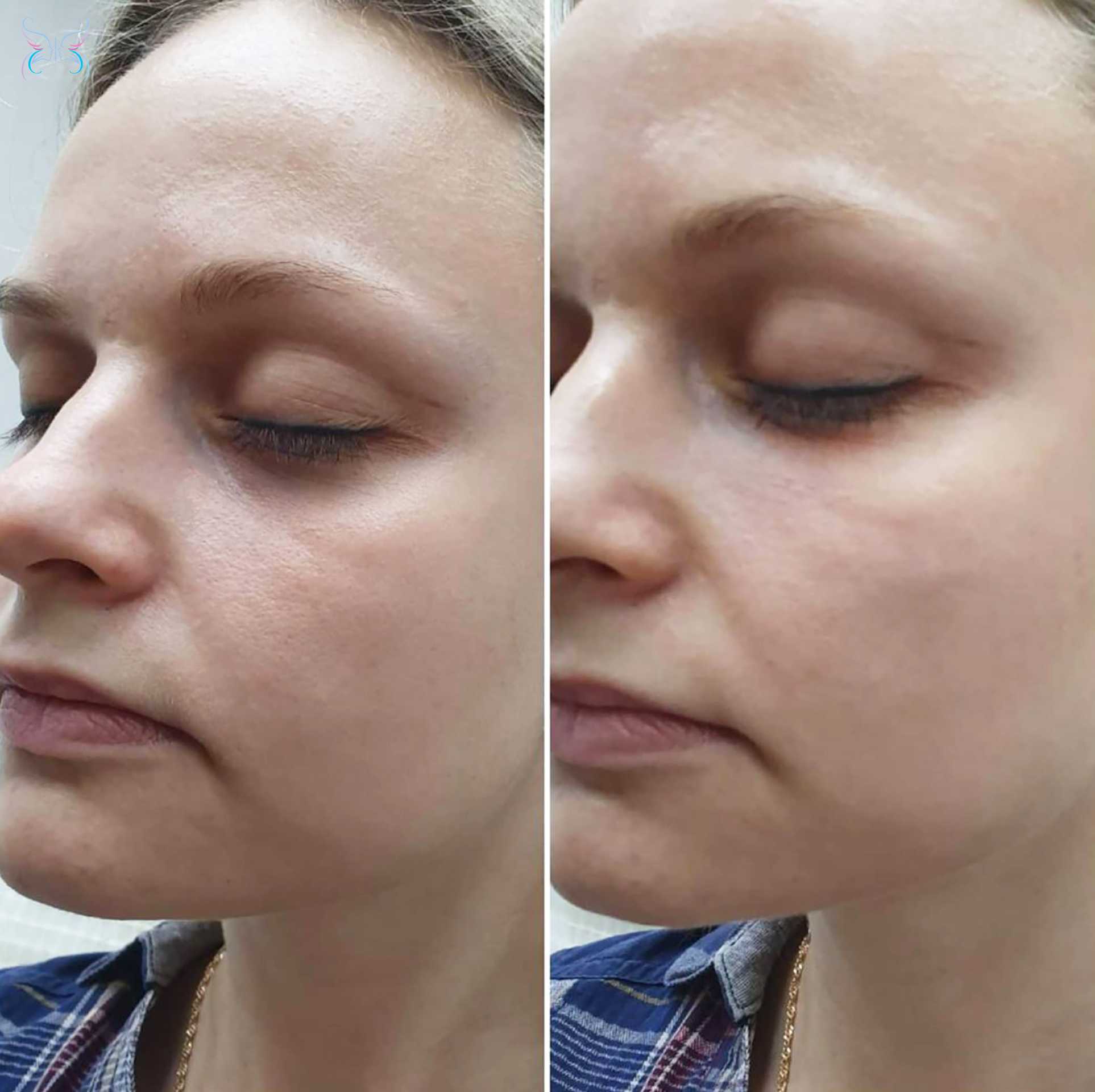 - Сглаживание носослезной борозды и других неровностей (например, «гусиных лапок»);