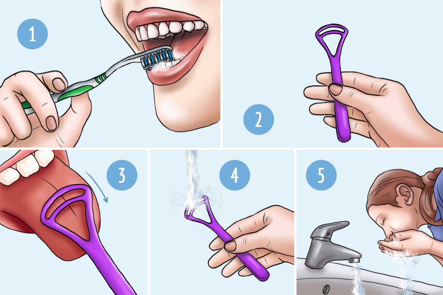 Для того чтобы гигиеническая процедура была более качественной, начинайте очищение с задней части языка. Если чувствуете необходимость, добавьте немного зубной пасты. Проводите очищение после еды, чтобы частицы пищи не задерживались на языке, вызывая размножение бактерий. Не забывайте регулярно промывать приспособления под струей воды.