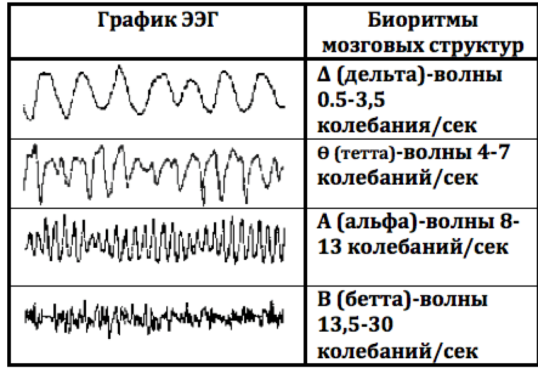 - дельта- и тета-ритм — медленный сон и эмоциональные реакции на негативные ситуации.