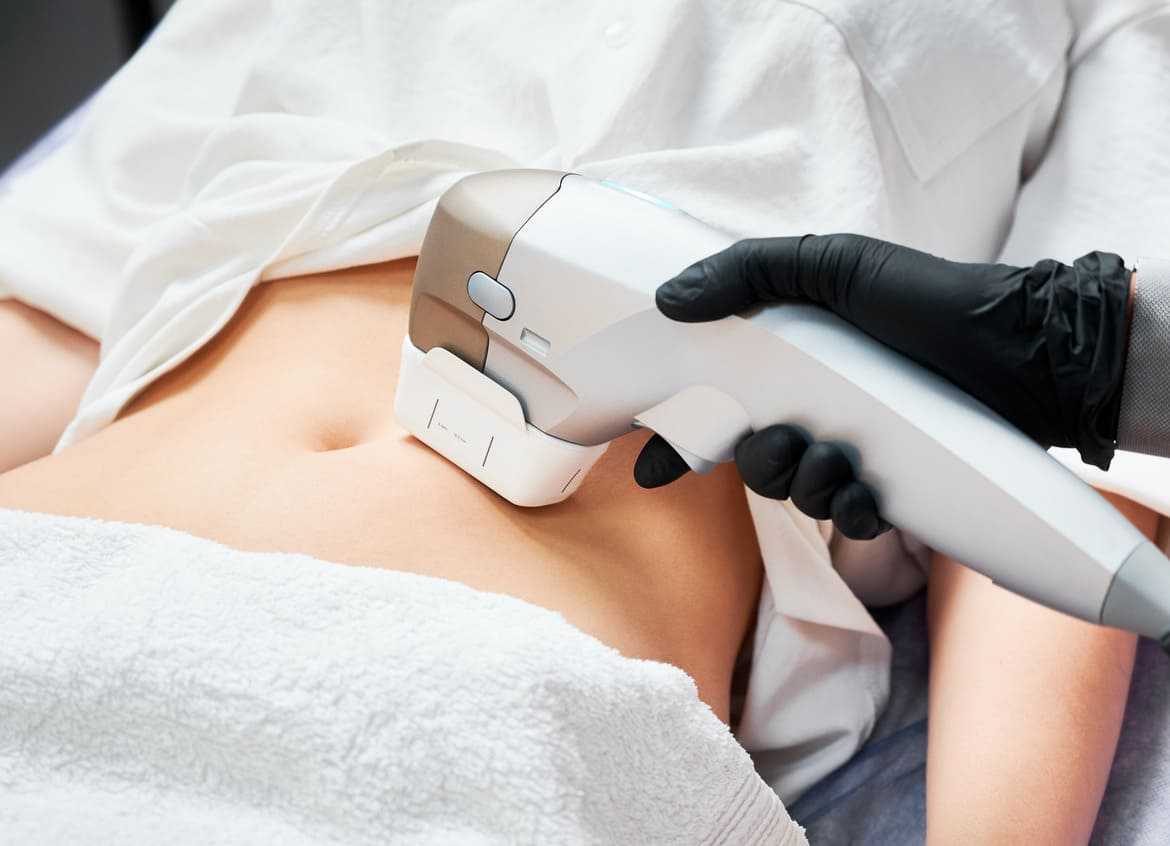 - Монополярный. Выбранная зона равномерно прогревается на одинаковую глубину. Используется максимальная температура 50–60 градусов. Коллагеновая структура полностью меняется на уровне молекул. Глубина проникновения достигает 4 см. Такие приборы используют для борьбы с жировыми отложениями на животе и бедрах.