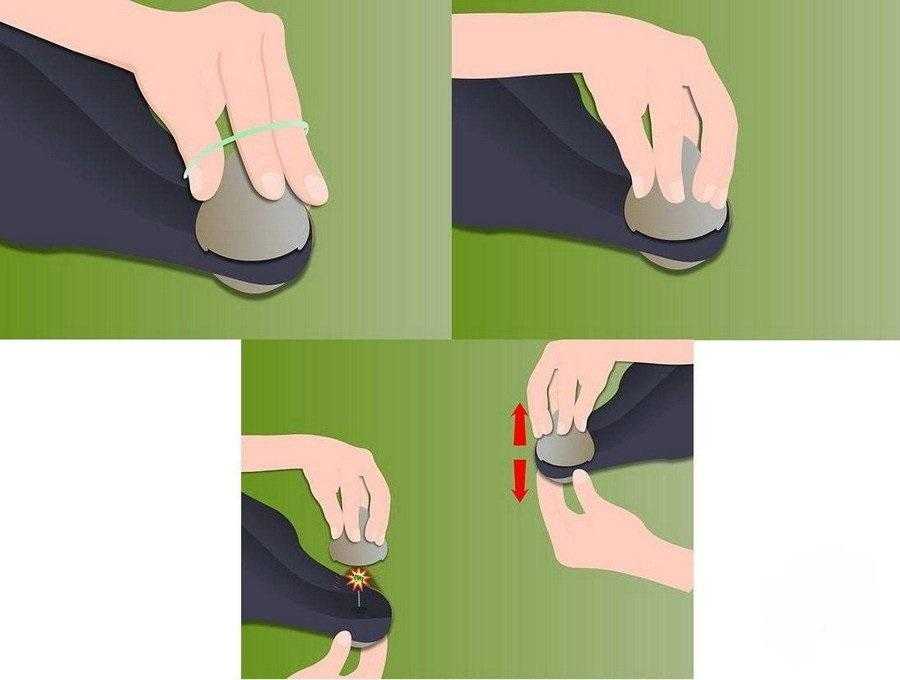 - Резинка для волос. Аксессуар помещают между тканью и выпуклой частью магнита, которая вращается, и продвигают до тех пор, пока резинка не зацепится плотно, а стержень не окажется свободным – тогда можно начинать обе части отодвигать в разные стороны до полного открытия.