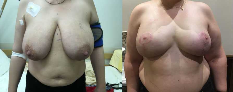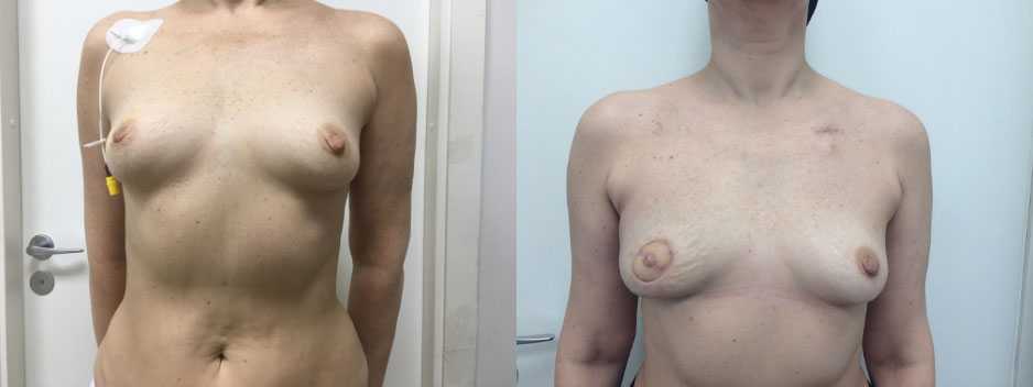 Важно сохранить на одном уровне инфрамаммарную борозду, воссоздать птоз железы. Иногда для создания симметрии необходима операция на здоровой железе, мастопексия или аугментация