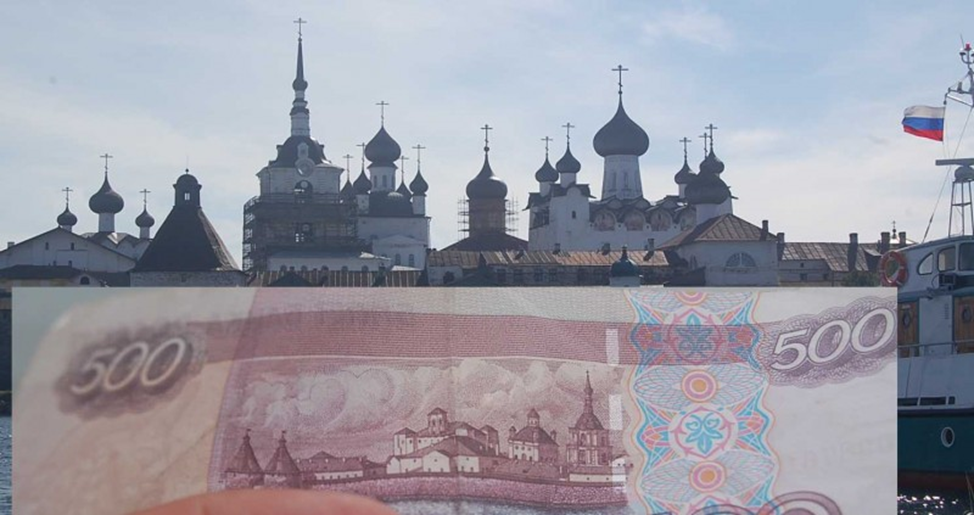 Расстояние между Соловецким и Архангельским монастырем около 250 км. Но на банкноте эти достопримечательности расположены рядом. Чтобы их увидеть, надо просто повернуть банкноту другой стороной.