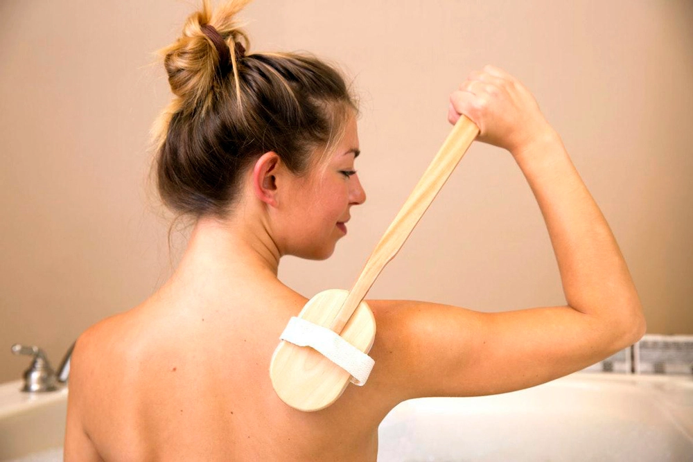 Самостоятельно можно делать сухие массажные процедуры при помощи массажной щетки. Все движения