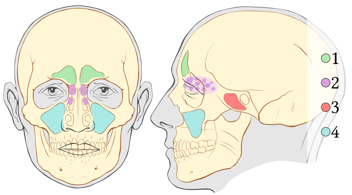 В зависимости от анатомической локализации воспаления, соответственно расположению пазухи, выделяют: