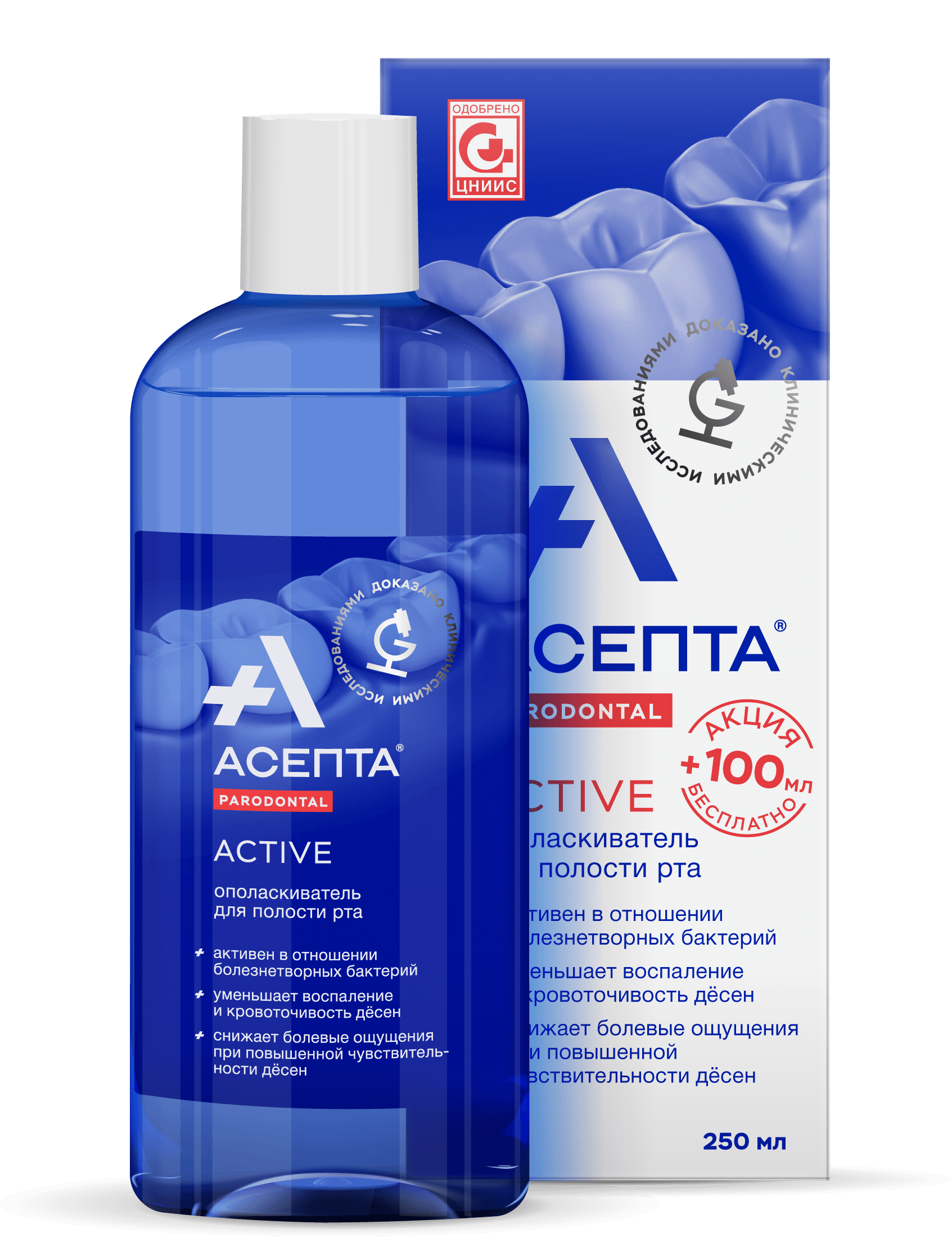 Восстанавливает зубную эмаль, снижает повышенную чувствительность зубов и дёсен и ускоряет регенерацию слизистой оболочки полости рта
