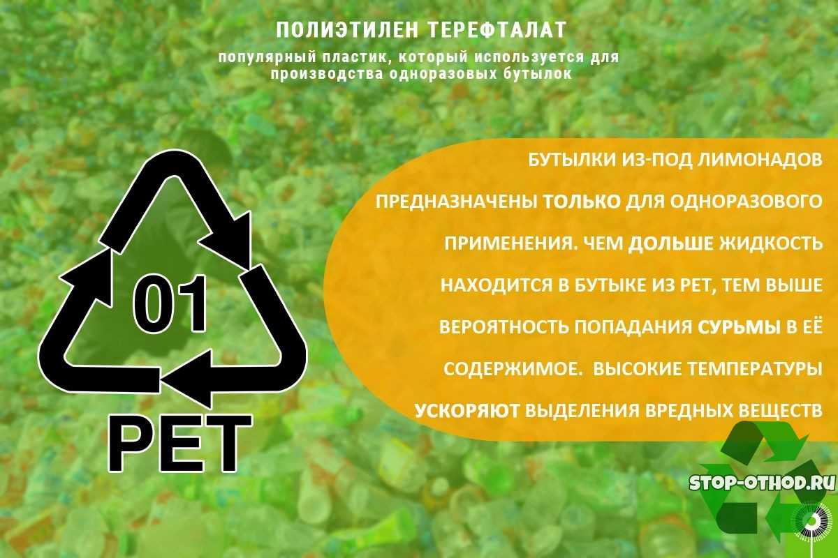 Особенность pet в том, что эта тара одноразовая. Повторное использование приводит к выделению вредных веществ, отрицательно влияющих на человеческое здоровье (щелочь).