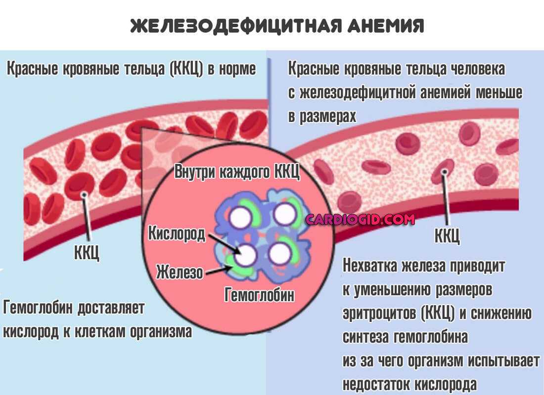 Сопровождается нарушением размеров форменных клеток крови. А с другой стороны, недостаточной концентрацией гемоглобина в их структуре.