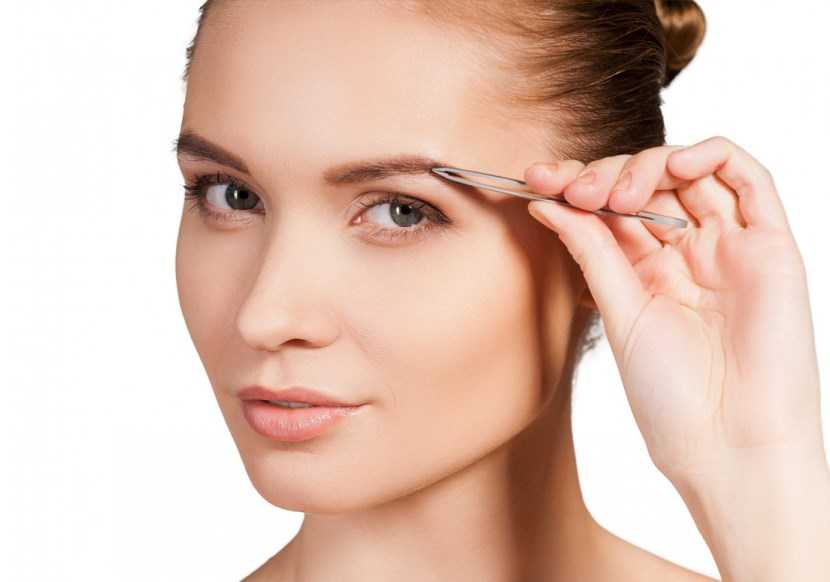 Лицо необходимо подготовить к предстоящей процедуре. Поэтому поправьте бровки, придав им нужную форму. Для этого можно воспользоваться обыкновенным пинцетом. Смотри на фото справа.