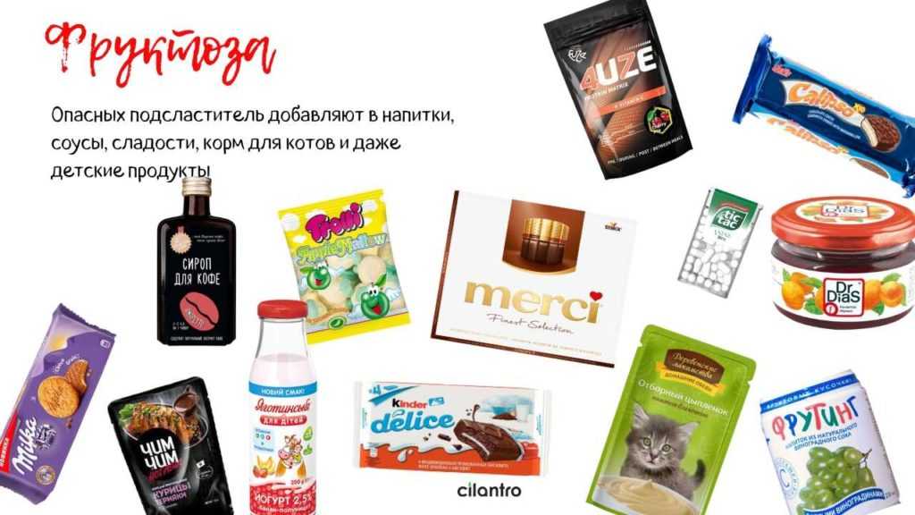 Если фруктоза в десертах – обычное дело (помните, она дешевая и сладкая), то вряд ли вы ожидаете ее обнаружить в корме своего кота (да, животным она тоже не полезна) и уж тем более, в детских продуктах.