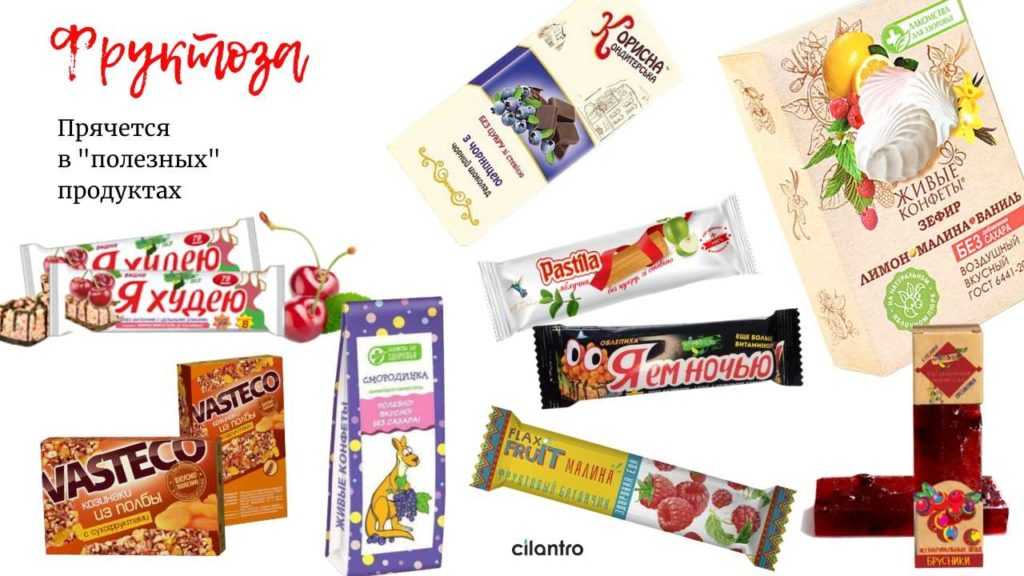 Многие «здоровые», «без сахара», «фитнес» и «диетические» продукты содержат «натуральную» фруктозу.
