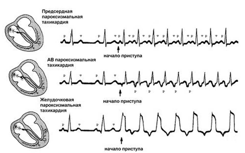 Пароксизмальная тахикардия возникает внезапно, возможно — под влиянием провоцирующих факторов или же среди полного благополучия. Больной замечает четкое время начала пароксизма и хорошо ощущает его завершение. На начало приступа указывает толчок в области сердца, за которым следует различной продолжительности приступ усиленного сердцебиения.