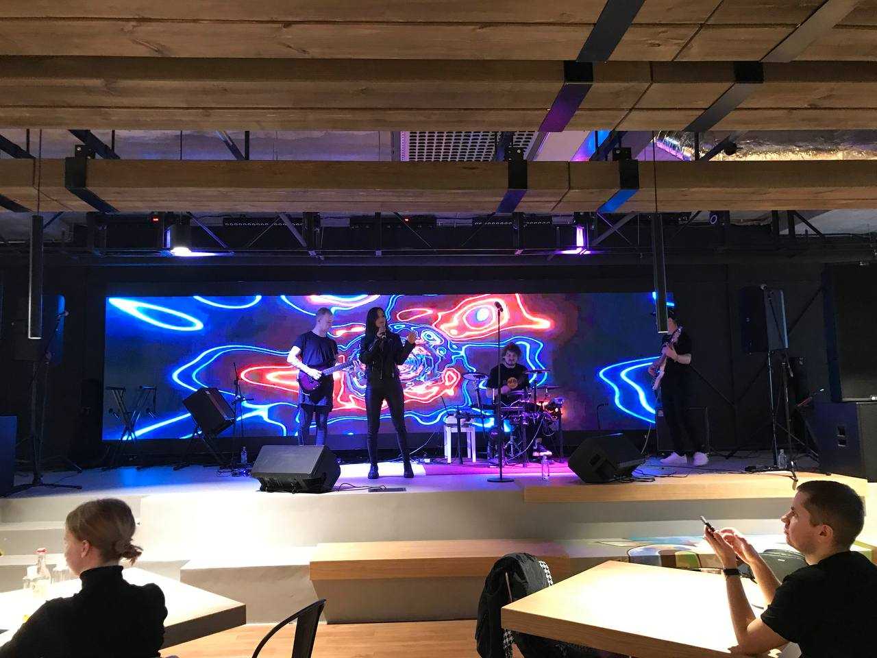 Однако самым приятным удивлением стало то, что посередине пространства установлена большая сцена, на которой по вечерам выступают кавер бэнды. Мы побывали на одном из таких выступлений. Стоит отметить, что все присутствующие (а людей было очень много) с большим удовольствием проводили время с друзьями и близкими под живое исполнение любимых музыкальных хитов.