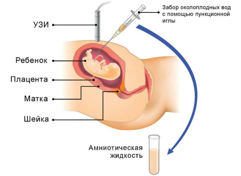 По аналогии с биопсией хориона, под визуальным контролем на ультразвуковом аппарате с помощью длинной иглы прокалывается стенка матки, в месте свободном от плацентарной ткани, и берутся на анализ околоплодные воды. Перед этим анализом также необходимо сдать анализы на возможные инфекции, как при биопсии хориона.