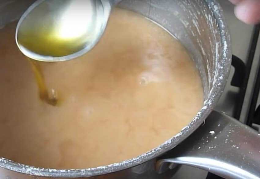 4. Добавьте ложку масла, перемешайте, дождитесь, пока снова закипит, и выключите огонь.