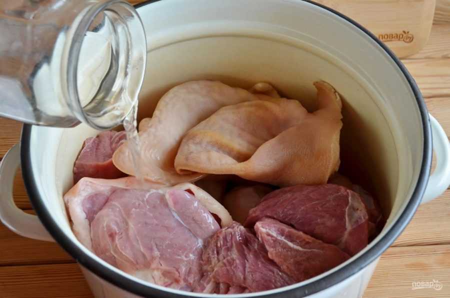 - Заложить кусок в кастрюлю целиком и влить воду.