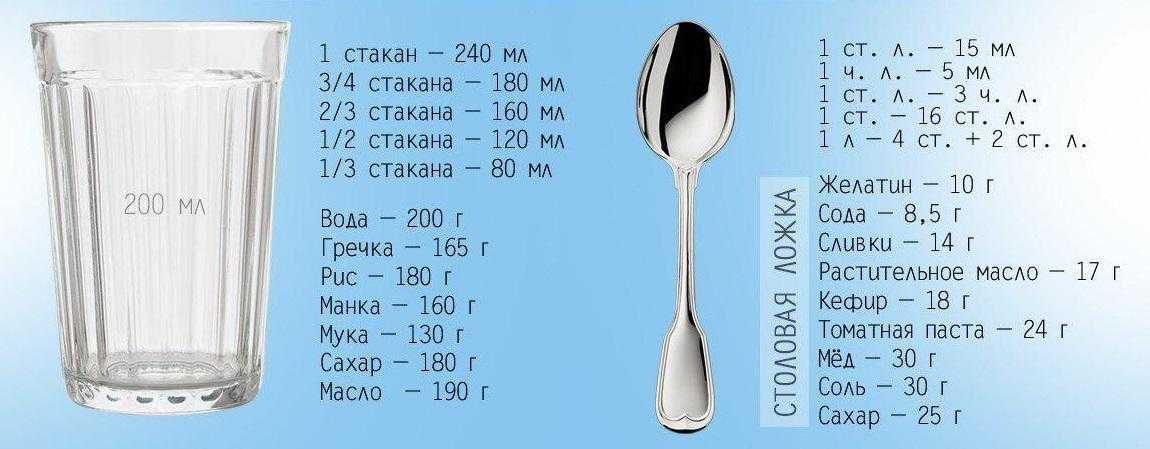 Объемы ложек указаны без горки.